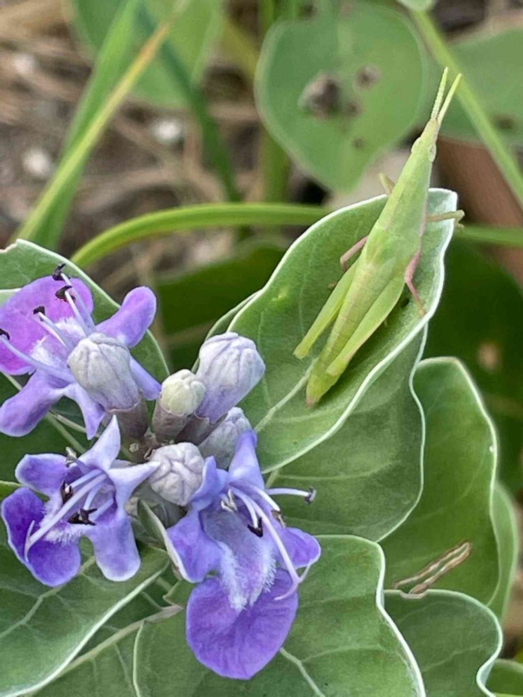三樹さん、珍しいお花ですねー👀お邪魔虫はバッタ❓変わっているお姿😂