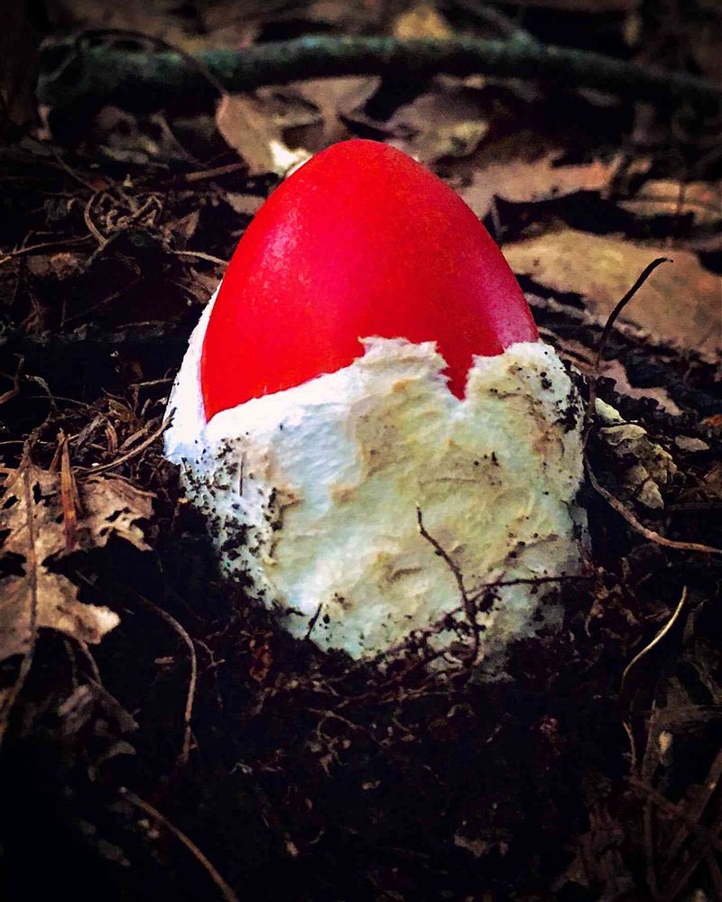 タマゴの殻から出たばかりの幼菌は、とても可愛らしく見えますねぇ〜❗️🥰 これが、デカくなるやつはかなりデカくなるのですが、見るからに毒キノコなので、知らない人は採りません‼︎😅💦 赤くて目立つので、探すのは楽です❣️👍