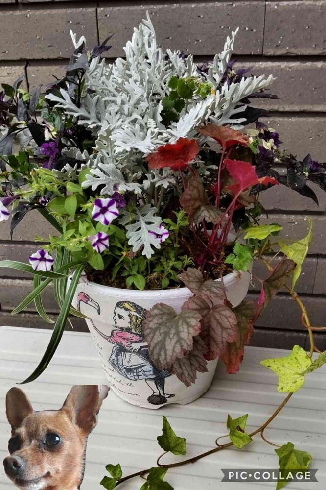 こんにちは☺️アリスの鉢と寄せ植えの雰囲気が素敵ですね✨