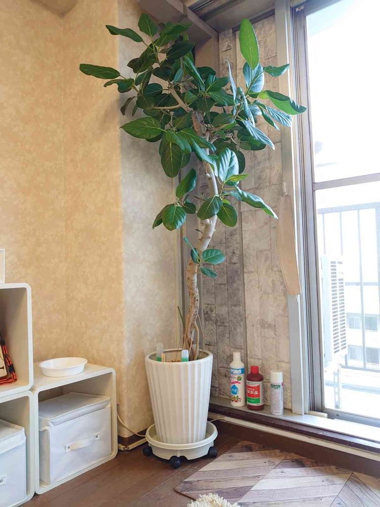 葉の量が購入時の3.5倍位になりかなり立派な姿になったベンガルゴムの木です。