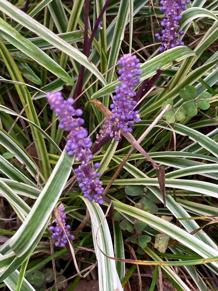 お出かけ先,ヤブラン(藪蘭)斑入,紫の花の投稿画像