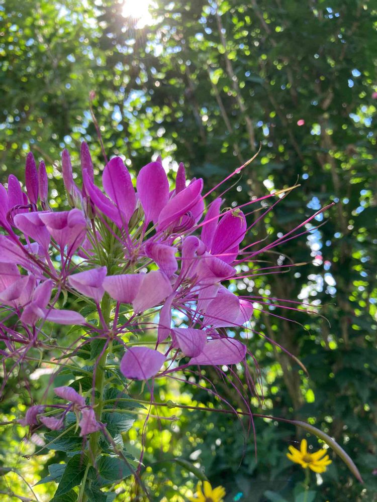 クレオメの色が濃くなりました〜。樹々の緑バックにしても映えます🥰