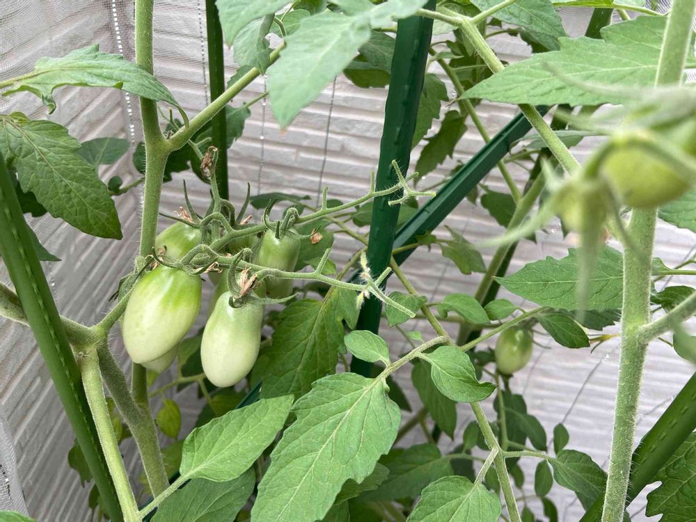 ミニトマトのアイコさん、実が一向に赤くならず。もうダメかなあ、どなたかご意見頂けませんか?植え付けは六月と遅めだったのですが😣😣😣