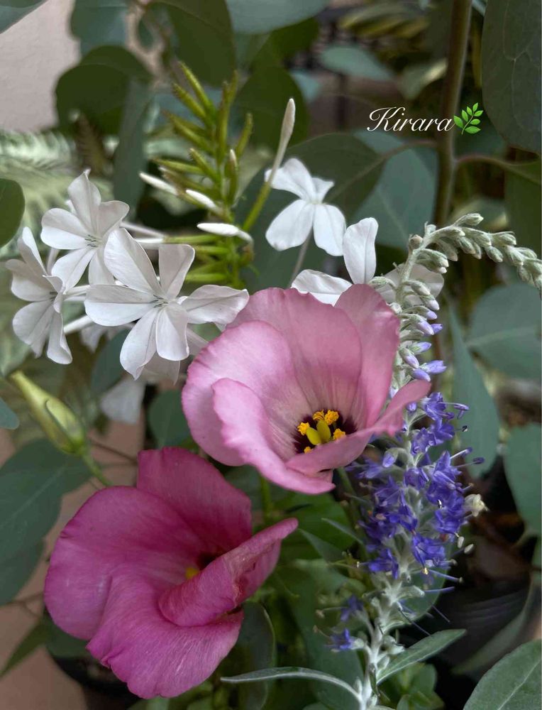 細々とだけど今年3回目の開花のトルコキキョウ💕 白いルリマツリと何年も居るトウテイラン達は夏の終わりに優しい雰囲気を醸し出してくれます(✿˘艸˘✿)