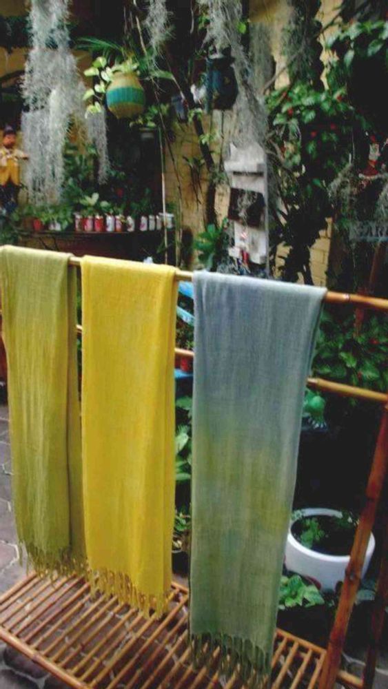 さん このストールはチュランの花がメインでカユマニスとターメリックを少々、グラデションの重ね染めをしています。一番人気でしたq