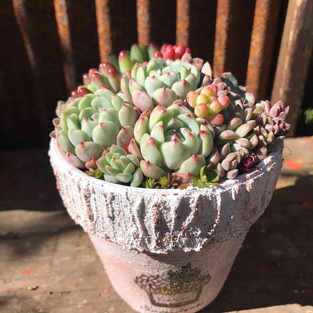 多肉寄せ植えレッスンを行なっています。寄せ植え、古物大好きです。