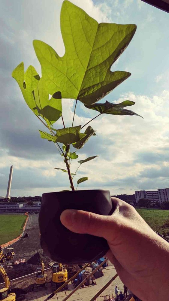 道ばたのひび割れから生えてたユリノキの芽を救出してから2ヶ月ほど