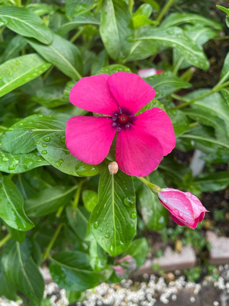 ビンカ タトゥー。9月に入って花色は濃いピンクになり、センターの黒い模様もくっきり鮮やかに!