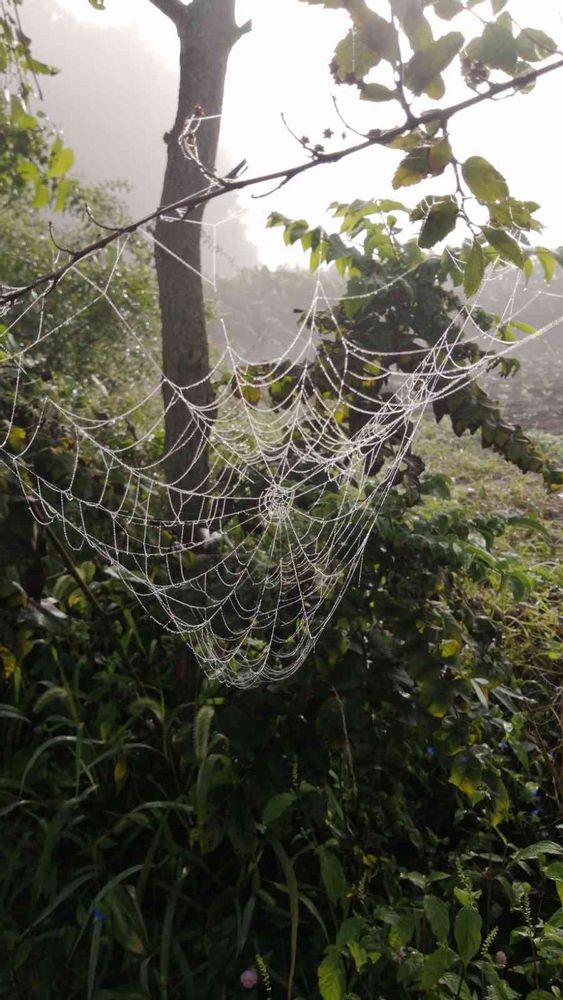 広い庭,クモの巣,濃霧の朝の投稿画像