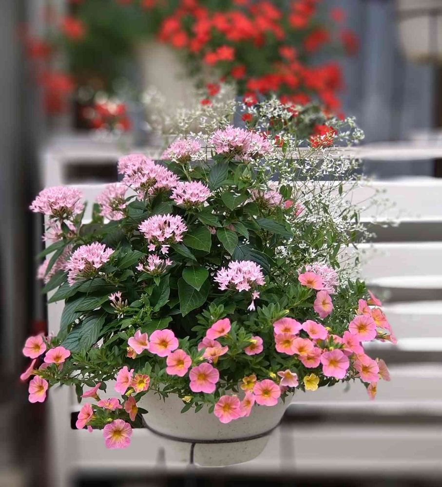 玄関前の寄せ植えが、元気に咲いてくれています☘️💓☘️💓