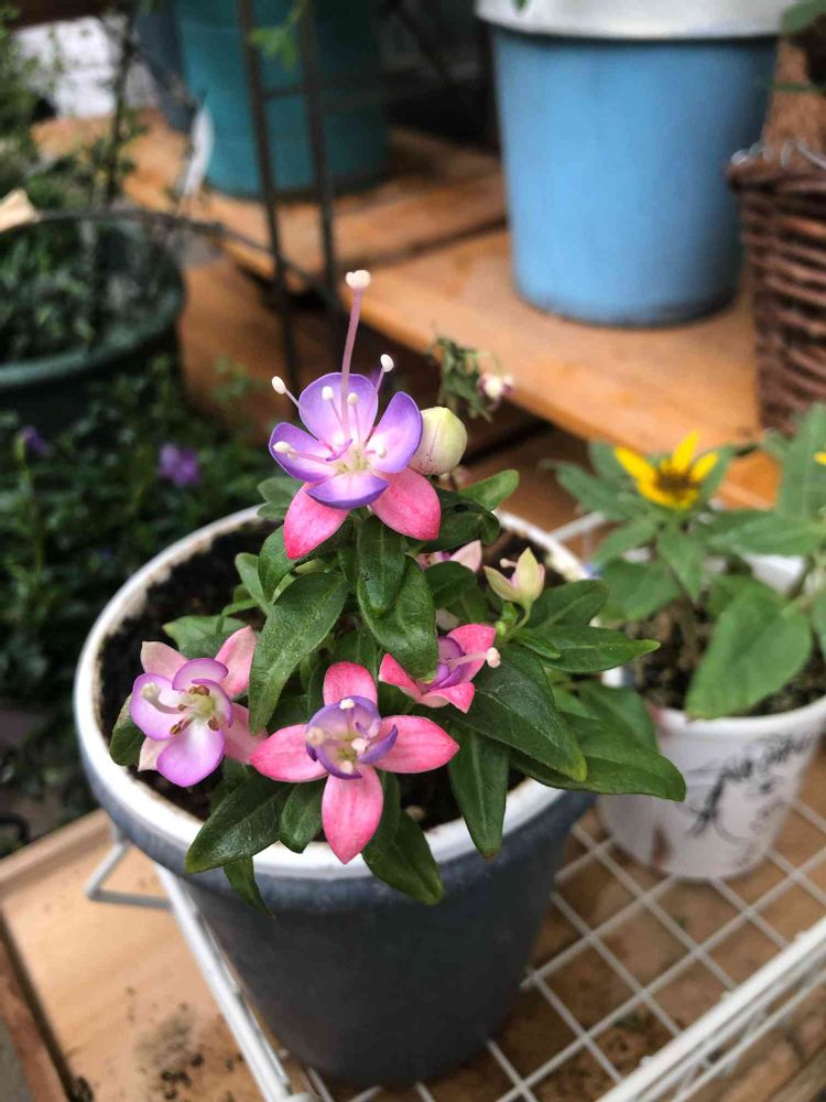 降り続いた雨の後久々に太陽を浴びたら、ルリマツリとフクシアのお色がとても綺麗に変化したような☺️