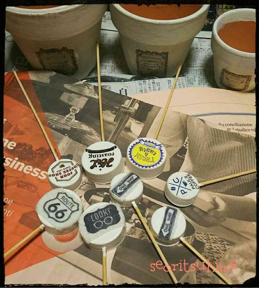 鉢を塗るついでに、ペットボトルのフタを再利用してピックを作り始めました。