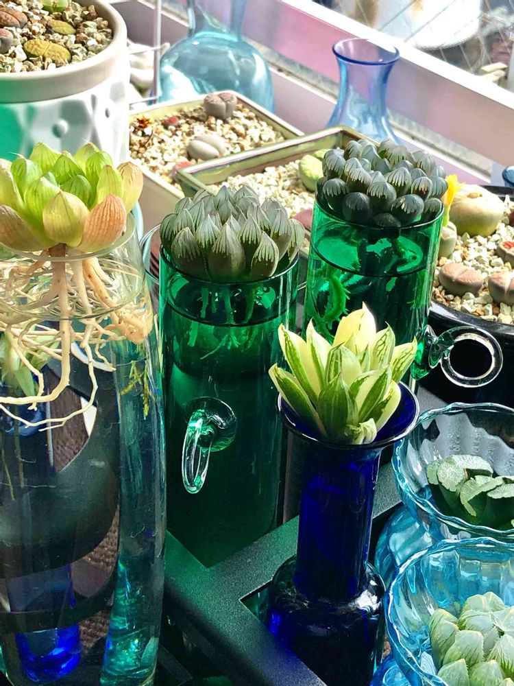 最高気温が30度を切るようになったので、最涼の部屋の中央で夏を越していた水栽培のハオルチア達を窓辺に移動✨