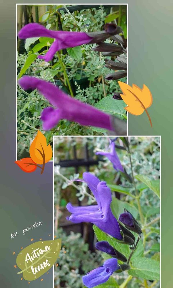 二種のサルビアが絶え間なく咲いています💜🌿💙