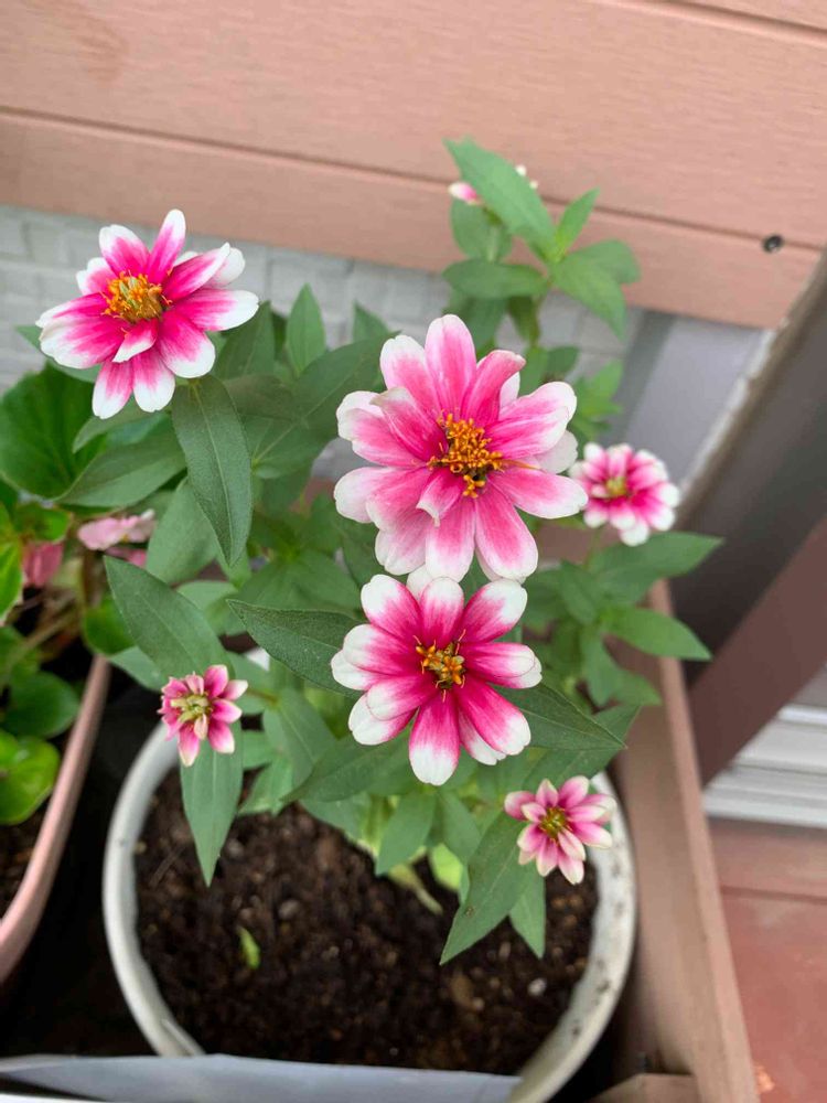 バルコニー/ベランダ,ジニア 八重咲き,寄せ植えの投稿画像