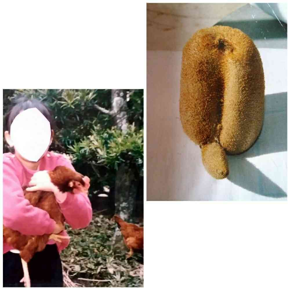 可愛らしい娘さんと鶏のおかげで、キウイ君も爽やかに✨見え、、、ないです😅