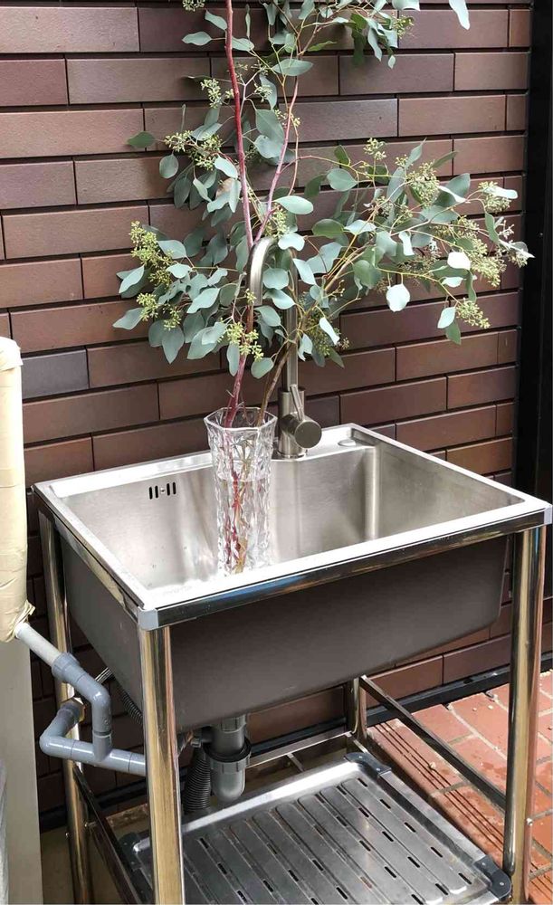 庭用の水栓があるところに念願の外用流し台を設置完了✨✨✨✨(5年くらい前から欲しいと思っていた)