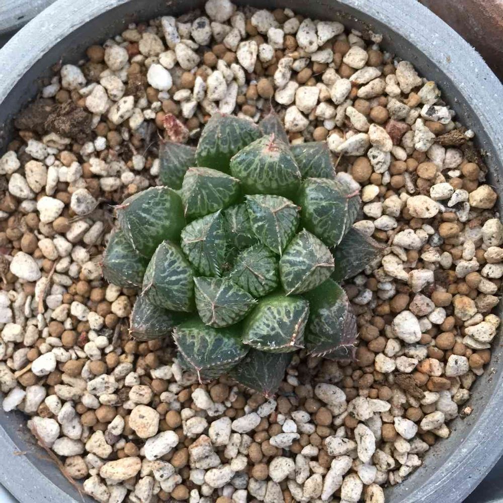 ハオルチア属、ドドソン系の紫オブツーサの交配種で葉の模様が印象的なこの1鉢✨