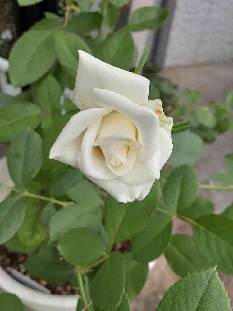 花束で貰った切り花の白いバラ。去年の11月挿し木して今年の春に蕾が開き、そしてまた秋になって咲いてきました🌹