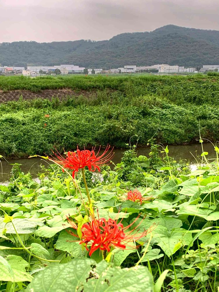 川岸に咲く真っ赤な曼珠沙華 ❤️
