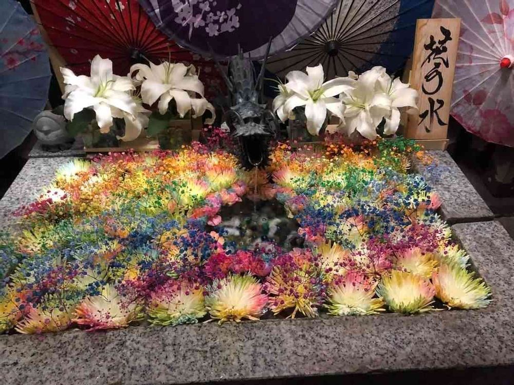 写真は、マラソン仲間からいただいた、札幌市 諏訪神社の花手水🌺