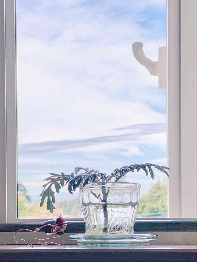 ハルさん💌窓辺がまるで1枚の絵のよう😍✨シロタエギクさんの根が元気に伸びてるぅ~✌️