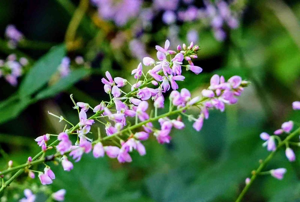 淡紅色の蝶々の形の花を沢山つけて、ピンクの絨毯のように群生していました😍🎶。花は、ヌスビトハギに似てます。