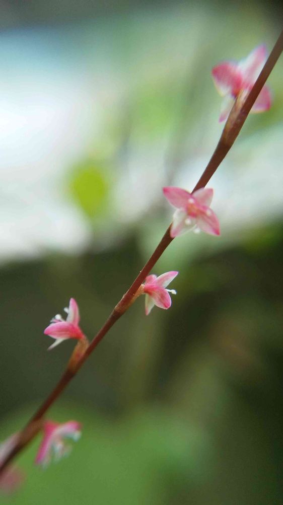 庭にミズヒキが沢山咲いているが小さな花が開いたところに初めて気がついた💕