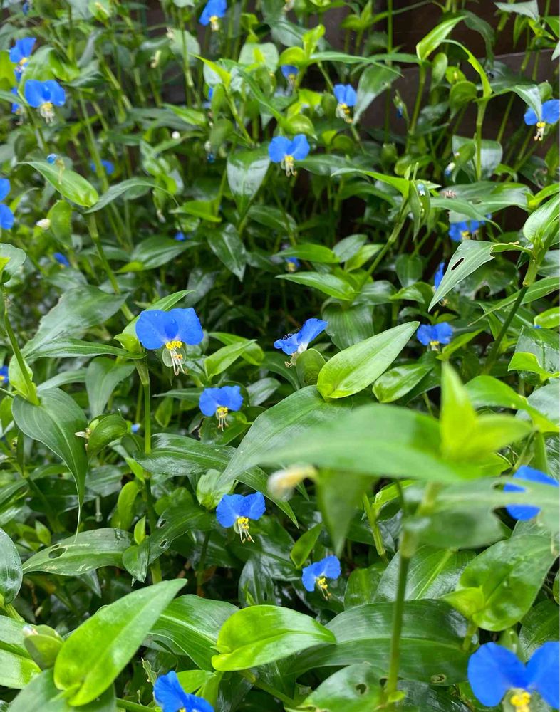 今も部屋から見えるツユクサが、シトシト雨に打たれながら咲いてます🔹🔹🔹