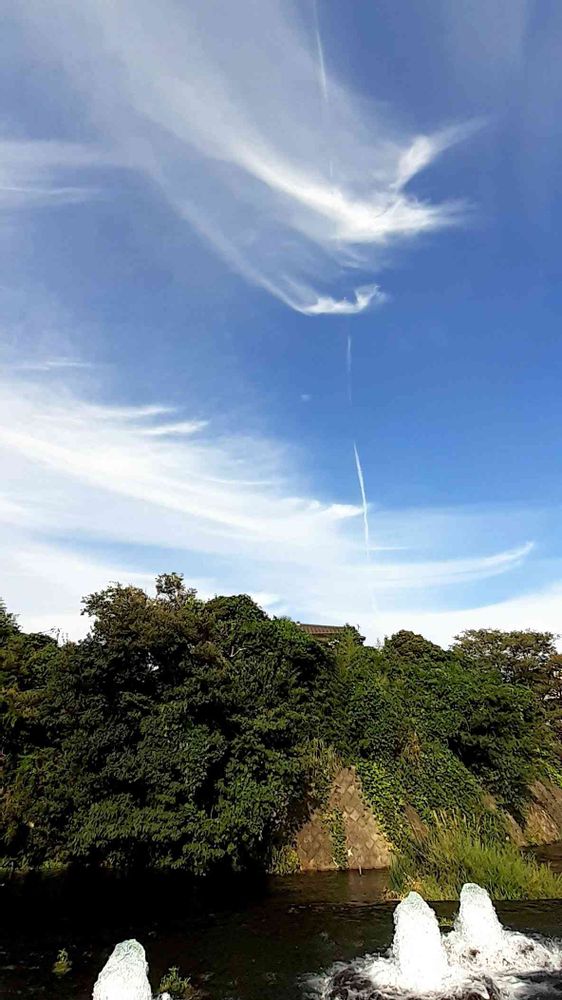 湧水の 3本柱と空に浮かぶ躍動感ある雲で自然の不思議を見ました❗️