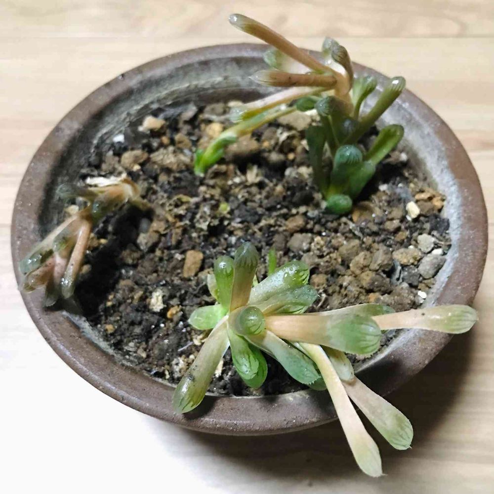 私のハオルチアは、ひと冬越せず、カラカラ瀕死状態まで落ちたのですが、かろうじて緑が残る葉だけ残して、根っこもほとんど切って、水耕栽培にしてみました。その後は見事に復活して、そのまま水耕で元気にしています。煮ても焼いても良い🥳のであれば、水耕もおすすめです。根っこの復活具合が目に見えるので、2倍楽しめますよ。