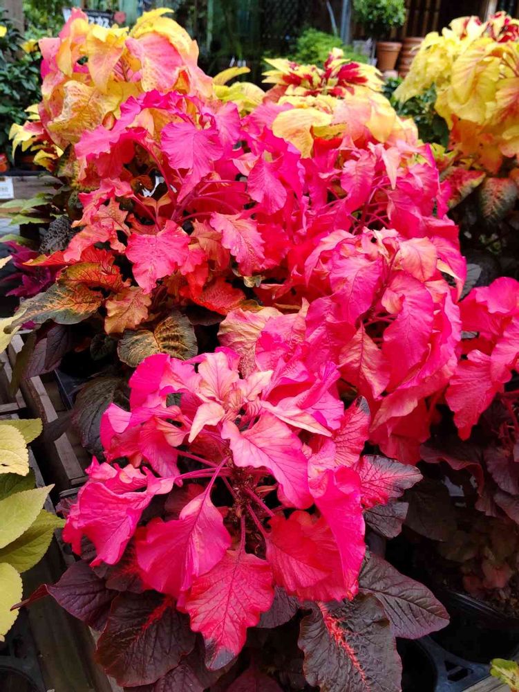 葉鶏頭は葉色が赤の単色 黄色の単色 赤・橙・黄色の複色になるものなど色々の種類があります。