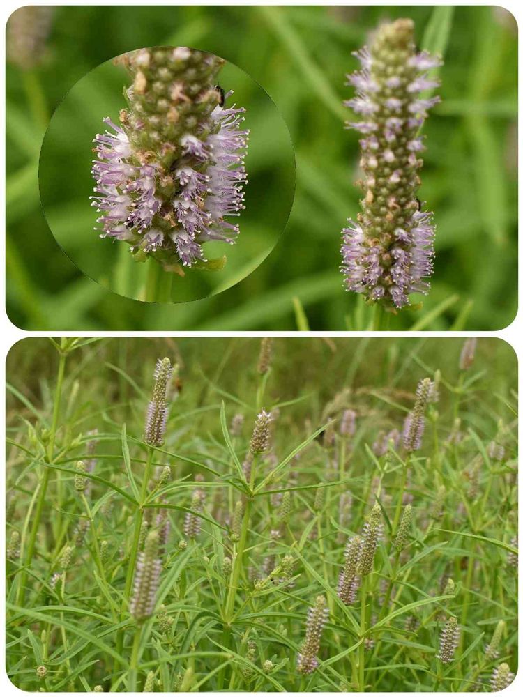 本州以西の水田や低湿地に生育する。茎は高さ15〜50cmで、途中から多数の枝を出す。葉は無柄、3〜6個が輪生し、線形で鋭頭または鈍頭で鋸歯はない。茎と枝の先に長さ2〜5cm、直径4〜5mmの穂状花序をつける。花序には直径2mmほどで白色または淡紅色の花が密につく。