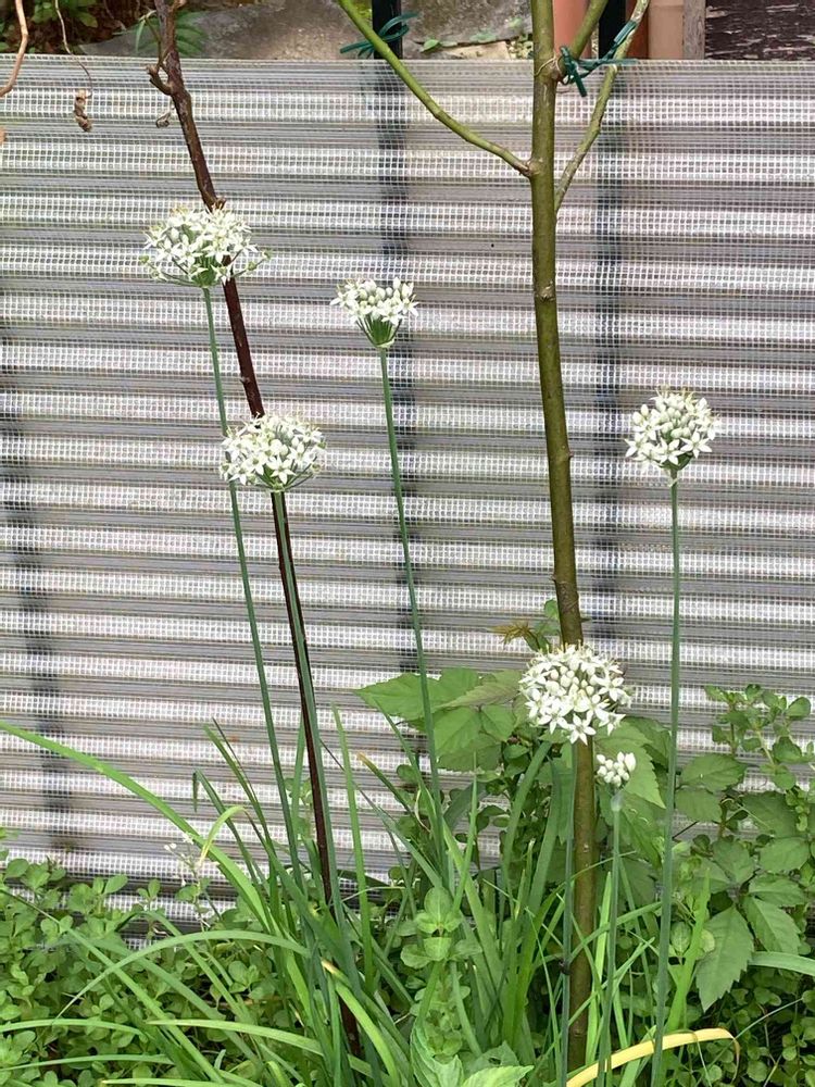 ニラが薔薇の🌹の下に。
