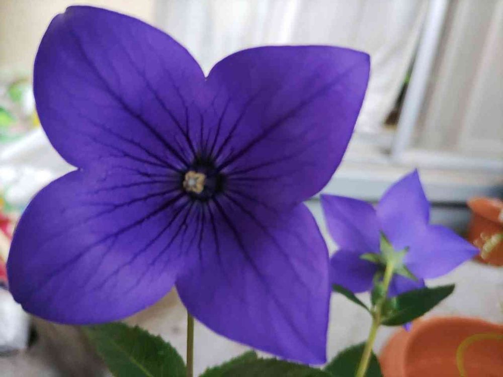 昨日蕾だった紫の桔梗。朝見たら花びら4枚。えっ⁉️