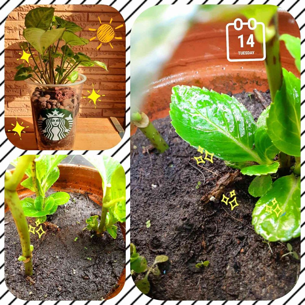 初めて紫陽花の挿し木をしました!可愛い新芽が出てきました
