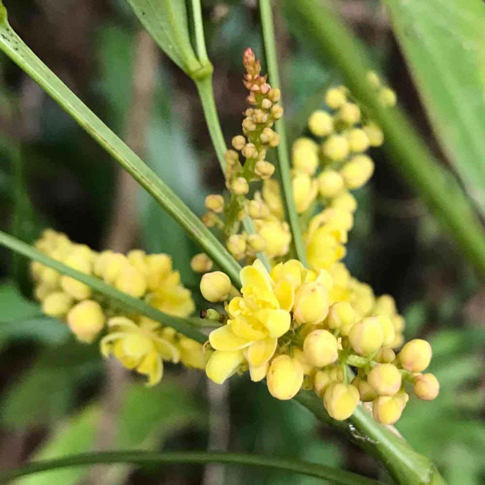 検索してみたら葉っぱが棘がなく笹のように細かったらマフォニアコンフューサでしょうか?