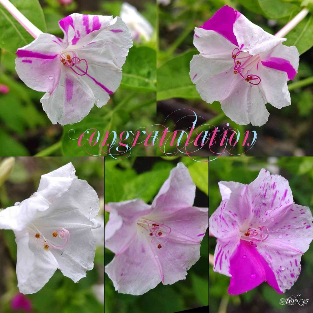 ありきたりのオシロイバナですが㊗️お祝いさせていただきました*.(๓´͈ ˘ `͈๓).*✩.*˚😊💖💐🌺✨💫🍀