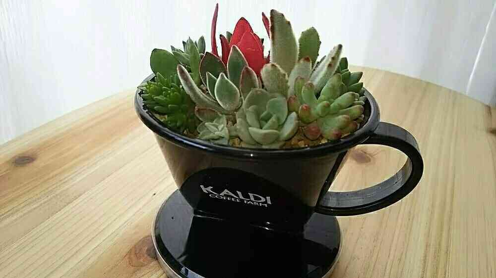 カルディーの☕コーヒードリッパーに寄せ植えしました☺