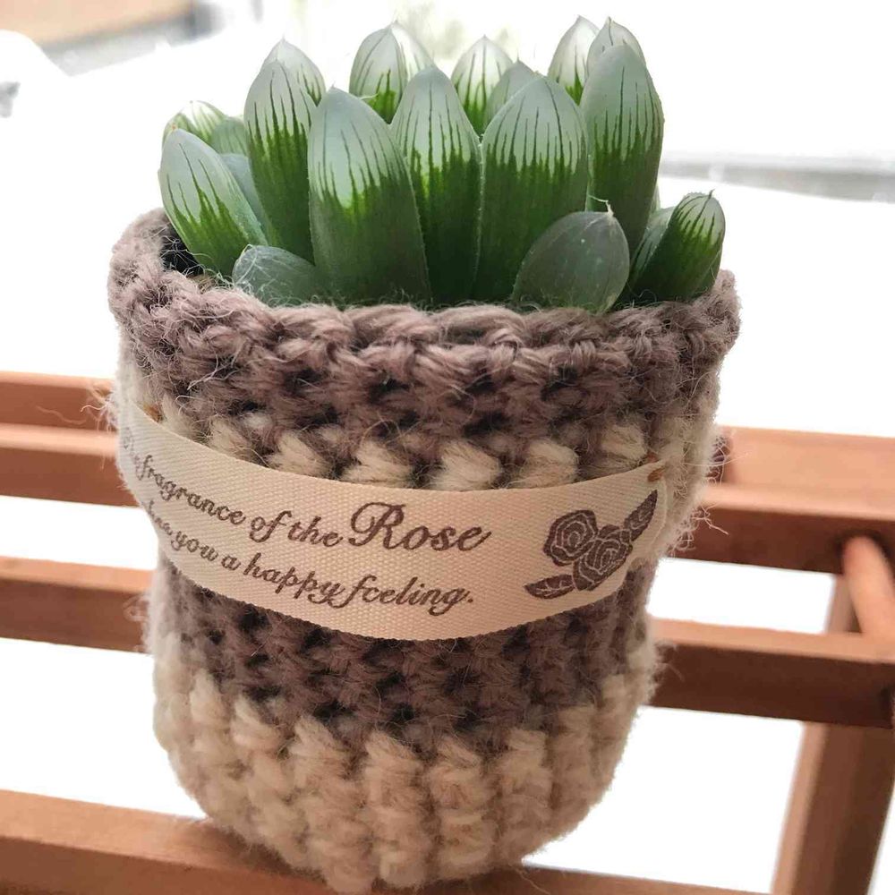 編みカバーが、すごくセンス良くお上手で、多肉ちゃんに似合ってますね💝