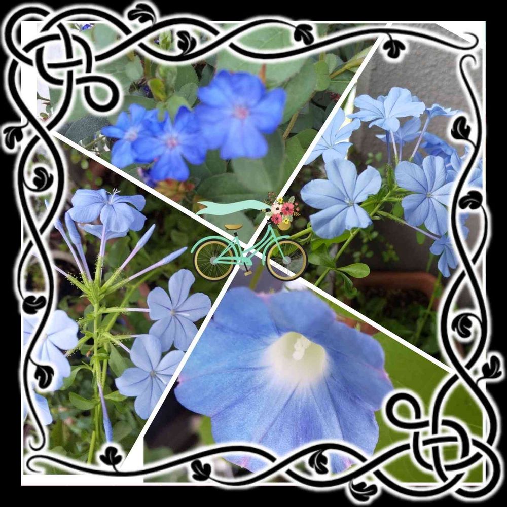 ルリマツリ↙️↗️とちいさな朝顔↘️で
