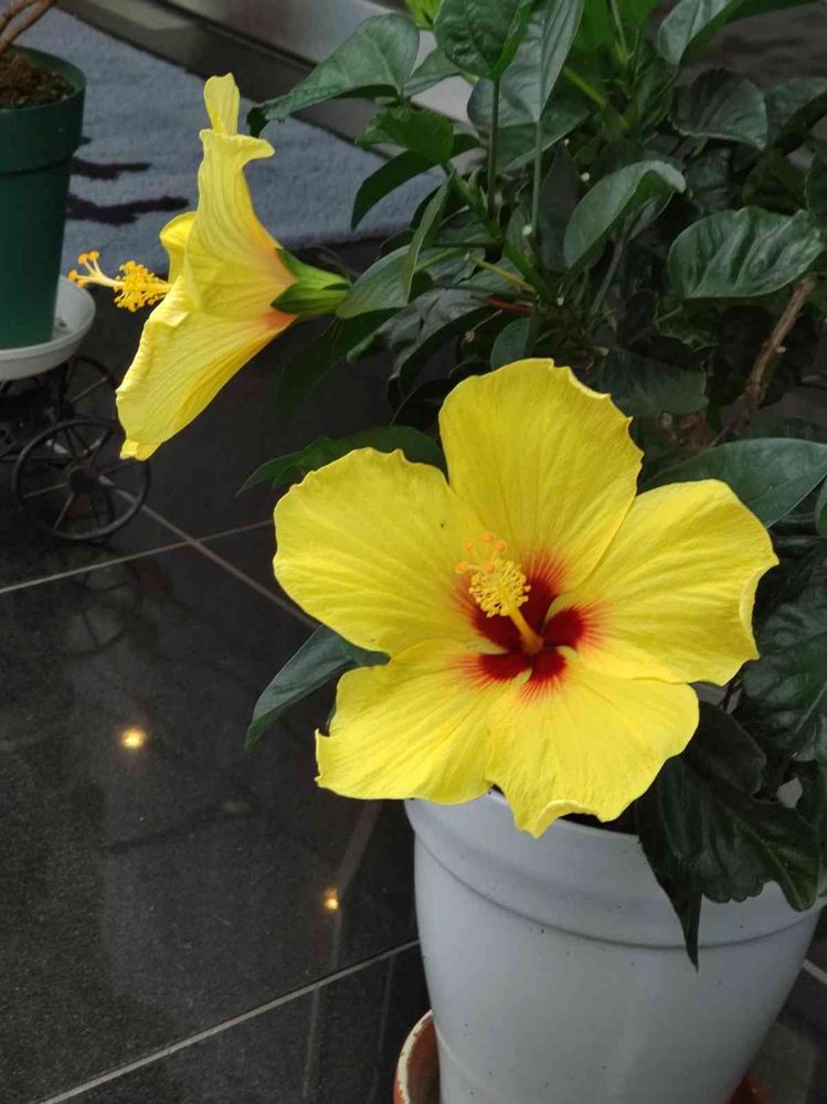 黄色のハイビスカスは余り見かけませんが パッと周囲を明るくしてくれますね。