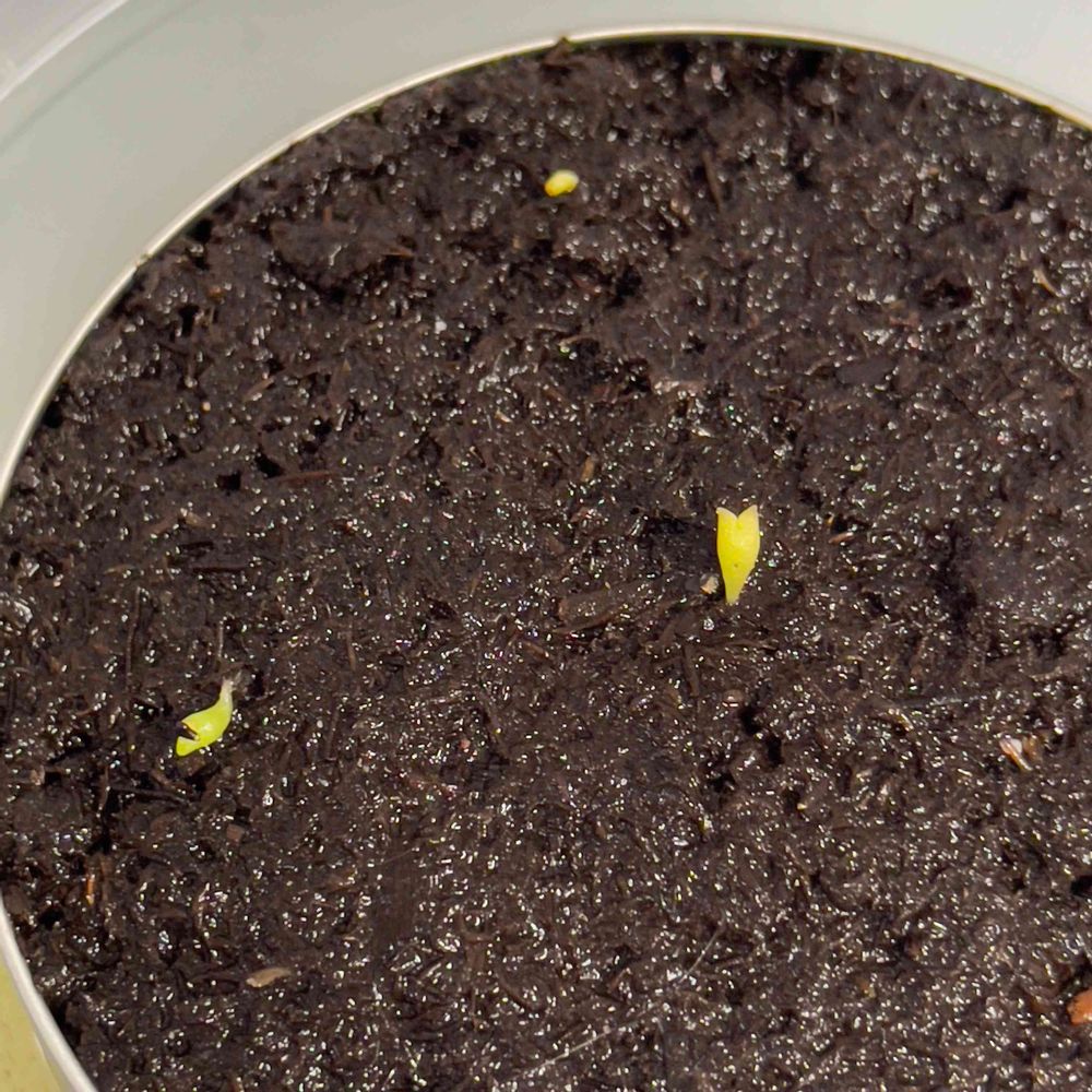 多肉ちゃんを種から育てることにハマっています。これはサボテンミックスなので何が生えてくるかわからない種が5個植わっています。なんだか真ん中解けそう……。左も転がってしまっているし。写真上部にもひとつ小さいのが出てきました。