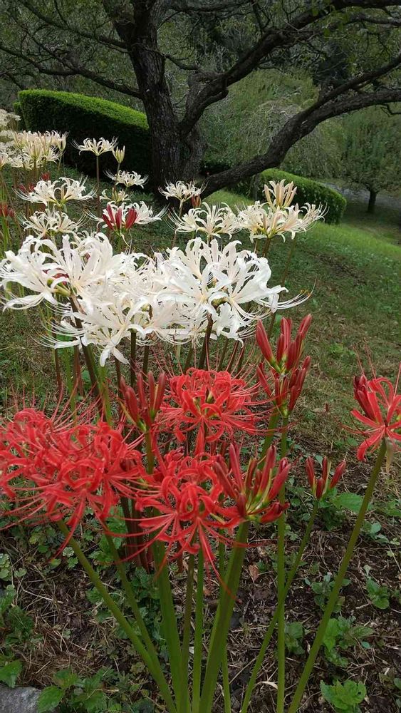 紅白のヒガンバナとっても綺麗です。❤️🤍❤️