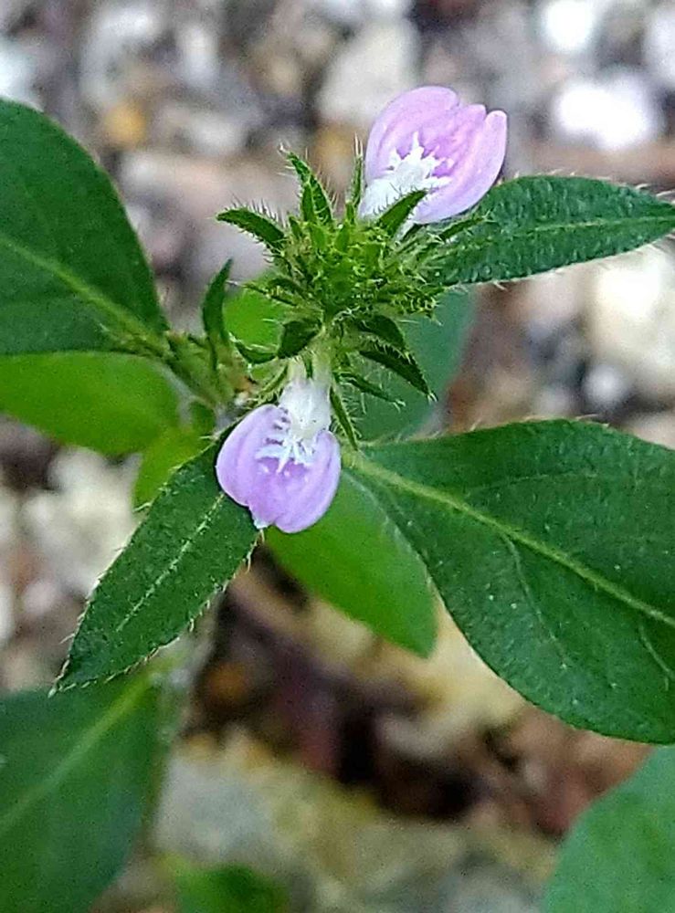 湿っぽい山道に咲いていました。淡い紫色の唇形の花。長さ1センチ未満の小さな花です。
