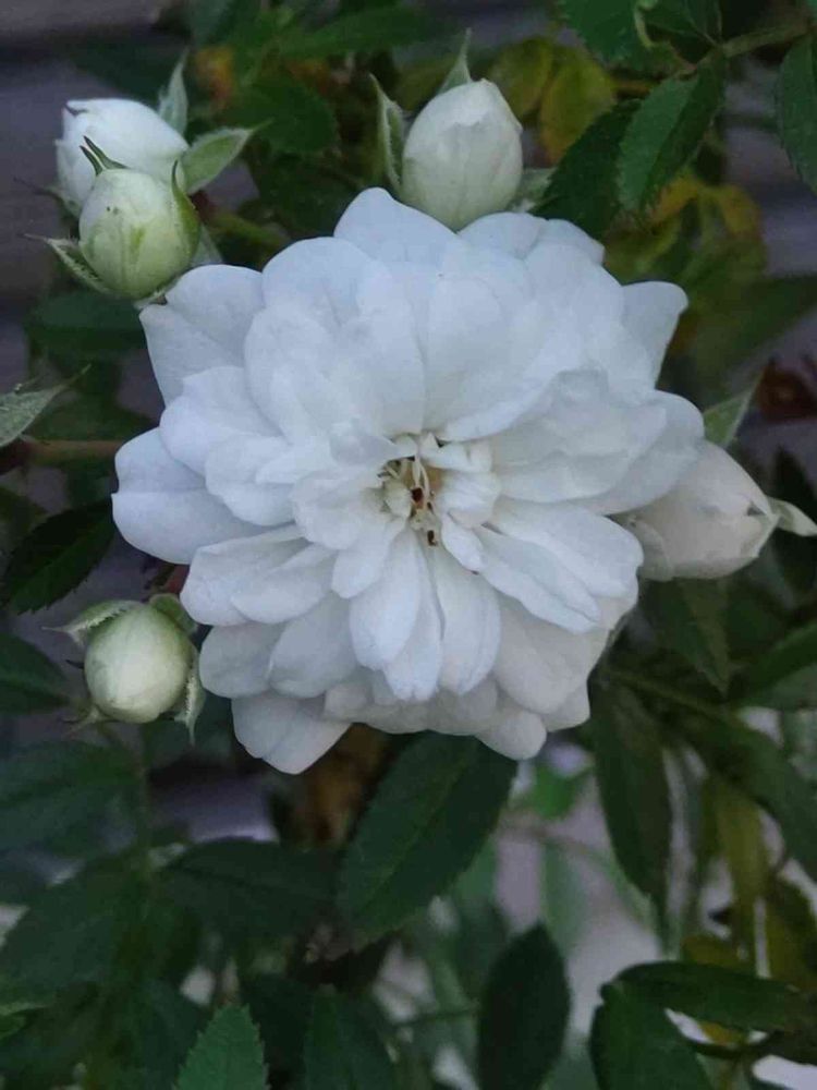 そうなんですよ。よーくみるとバラの葉っぱでトゲがいっぱい💦あまりにトゲがキツくて花を見て気に入らなかった処分と思って、ほぼ放ったらかし😂原種に近いバラでどんなヤマセに吹かれても平気⤴️虫も病気もなく、小さく房で次から次へと繰り返し咲く花は花もちよく、残すことにしました。ヤマセガンガンあたるとこで存在感だしてます😃
