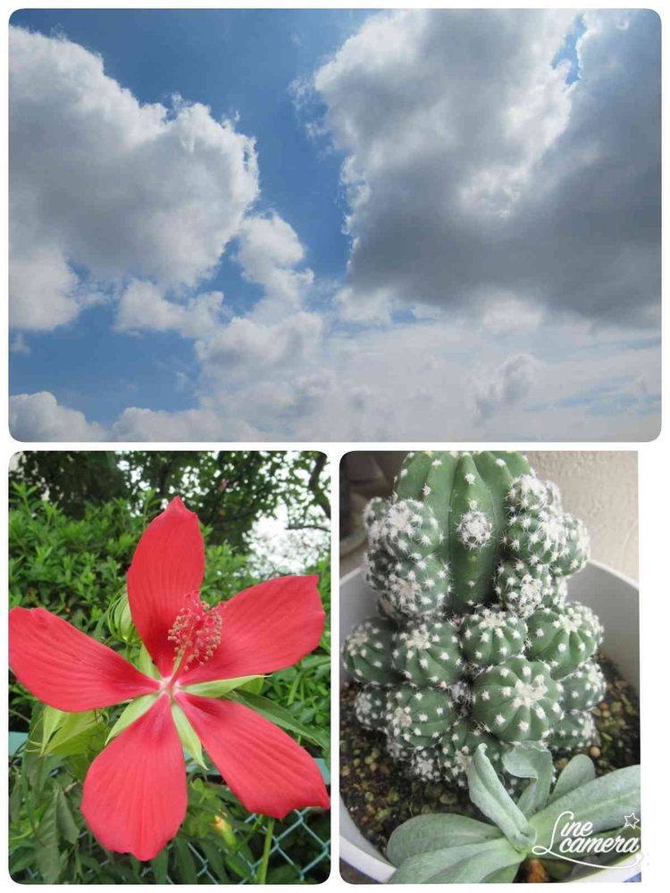 チビクロさんのサボテン,モミジアオイ,青空の投稿画像