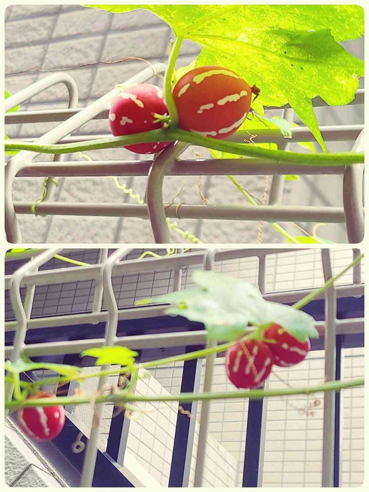 6月に苗で迎えたオキナワスズメウリの実が色づきました。