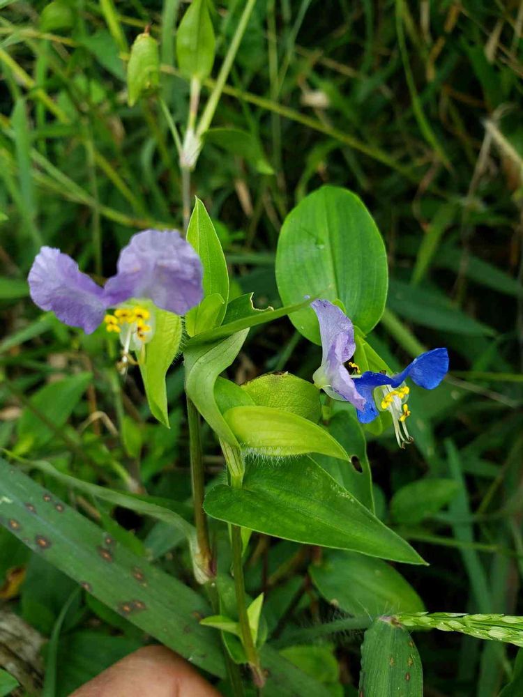 今年も咲きました。薄紫のツユクサと普通の青の花