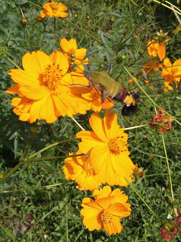 オオスカシバ、蛾なのに好きな虫です!でも、クチナシの葉っぱを丸坊主にしてしまう大食らいの幼虫には手を焼きます!😁
